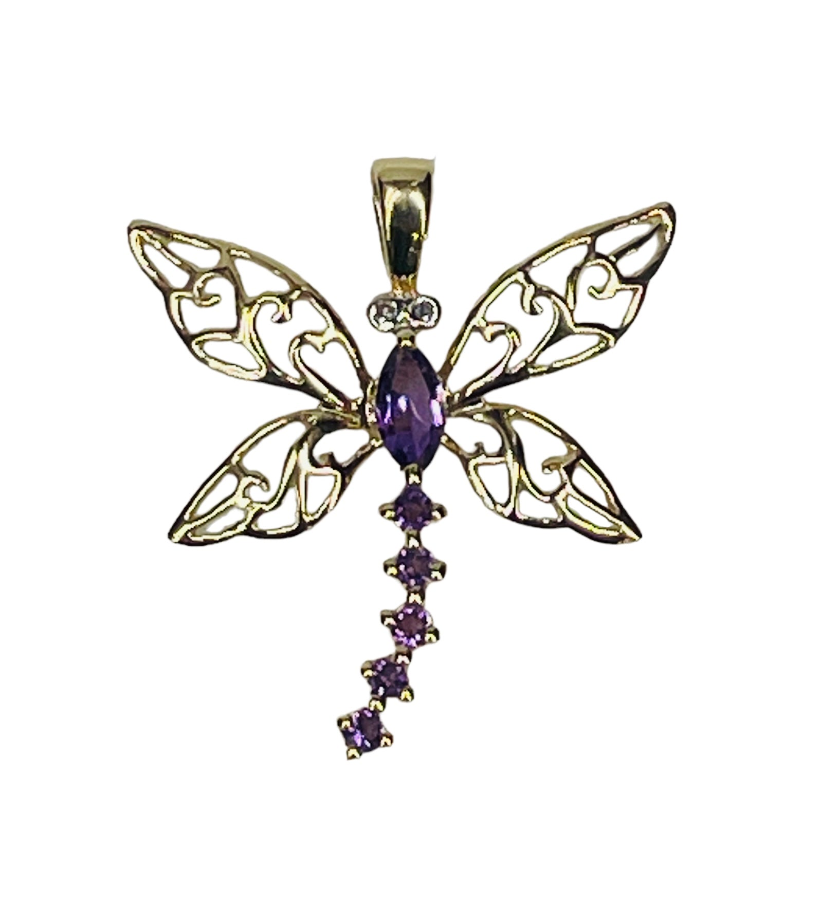 9ct Yellow Gold Filigree Butterfly Pendant with Blue Topaz