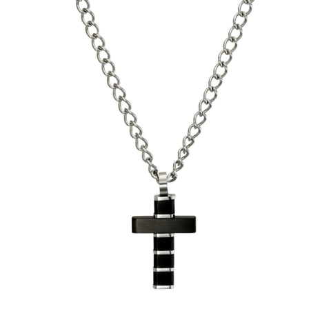 Blaze Flat Black & Stainless Steel Cross Pendant with a Curb Link Chain